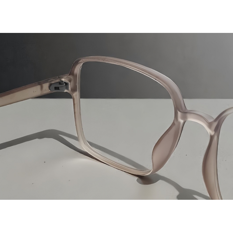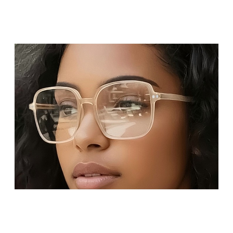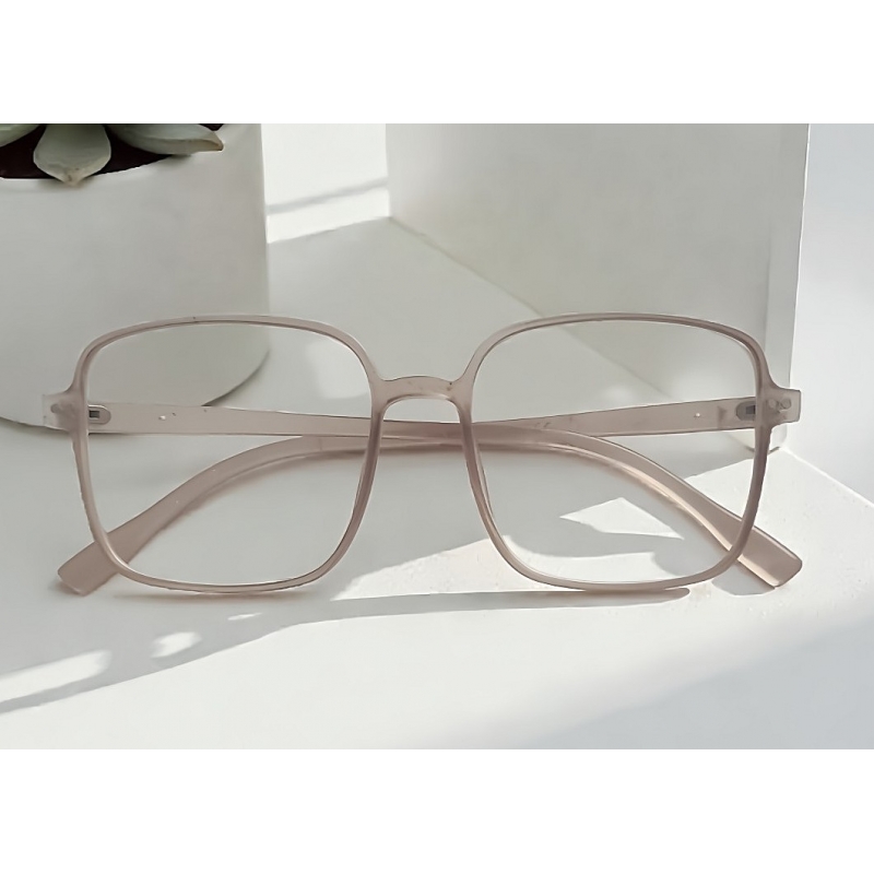 Ce modèle à monture beige translucide apporte une touche douce et lumineuse au visage, idéal pour un look naturel et chic au quotidien.