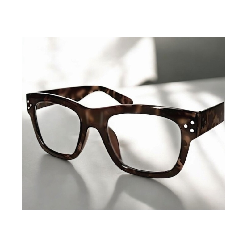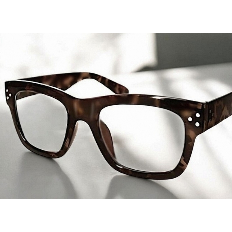 Les lunettes de lecture référence COL 169 marron écailles, monture marron brillante branches épaisses, sont des lunettes loupe pour la presbytie et la vision de près, de forme rectangulaire.