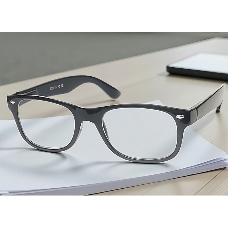 Les lunettes loupe de lecture de référence COL 15 noir, monture noire brillante branches épaisses, sont des lunettes loupe pour la presbytie et la vision de près, de forme rectangulaire.